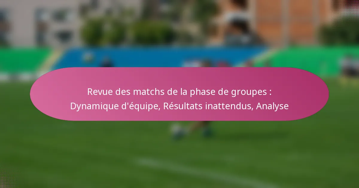 Les dynamiques d’équipe clés lors des matchs de la phase de groupes tournent autour de la collaboration, des interactions entre les joueurs, des stratégies d’entraînement, de la morale de l’équipe et de l’impact des blessures. Comprendre ces éléments peut fournir des informations sur la manière dont les équipes performent et s’adaptent lors de matchs critiques.